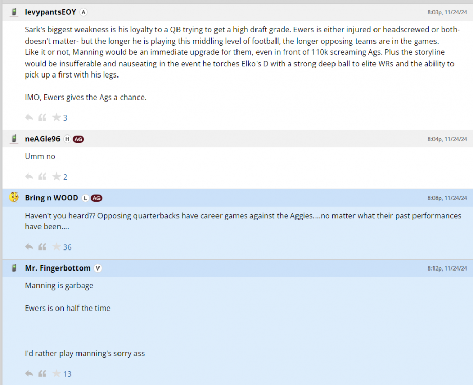 17. Immune to criticism is the first thing I think of when I think about aggy football or aggy sports in general.
