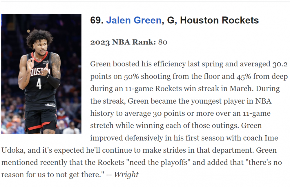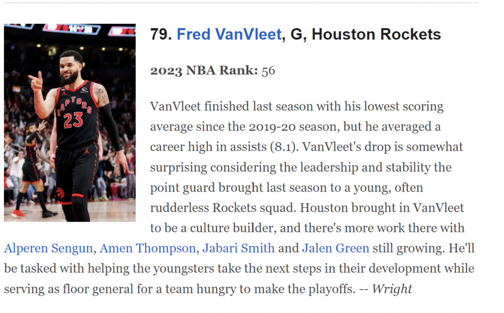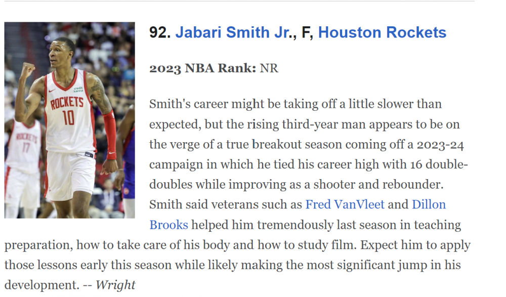 18. You called? Definitely don't see him as one of the top 100 but whateves Other Rockets No top 50 players