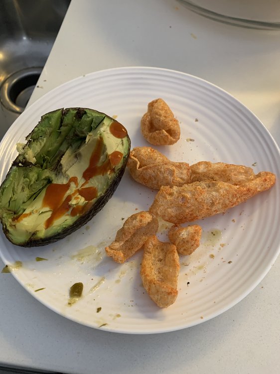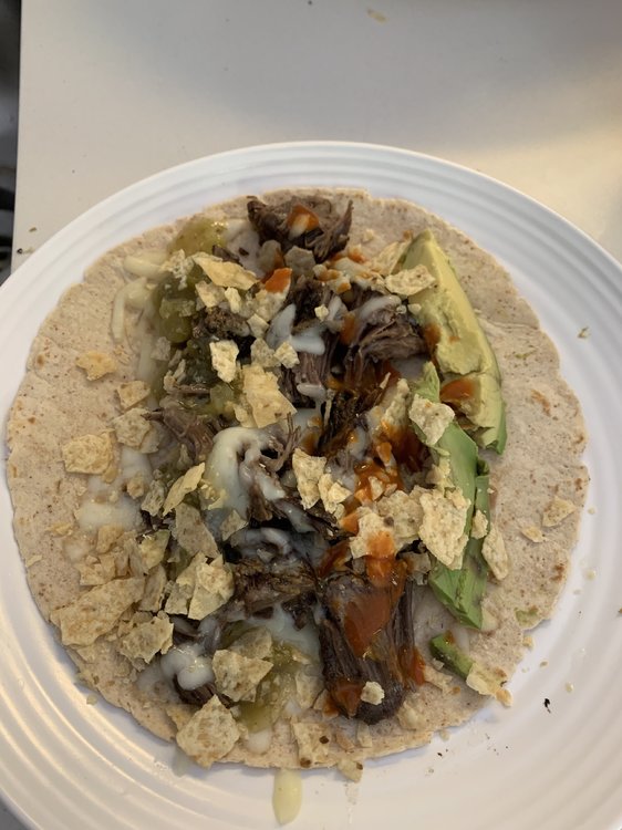 10. Quarantine lunch. Leftover short rib, jack cheese, green Chile sauce, avocado, and tying the room together crushed tortilla chips. Still hungry so finished off the avocado with Cholula and some chicharrones