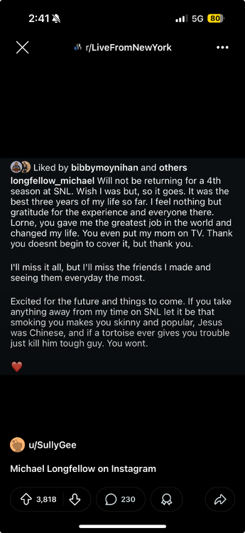 12. Longfellow was in a tough spot. Funny/weird enough for a recurring Weekend Update role. Probably not talented enough to carry Weekend Update solo. That was the craziest SNL rumor in Reddit history. Dark game show host was probably his only lane for sketches. A couple of them reminded me of some Hader’s work. If A24 has a dark comedy, he should read for it.