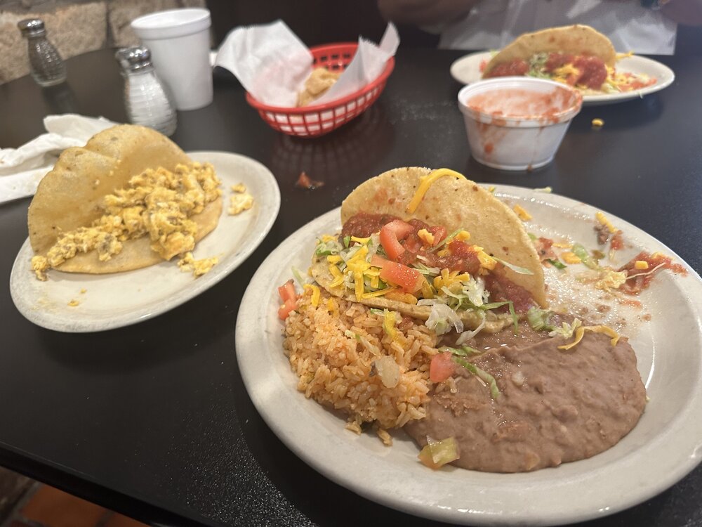 6. Teka's last week with a pal. Beef puffy taco plate & a puffy chorizo & egg...