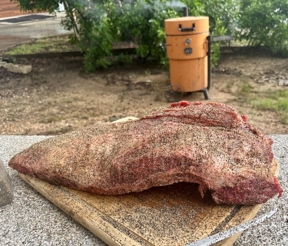 19. DPS brisket coming along nicely. Close to wrap and rest time--