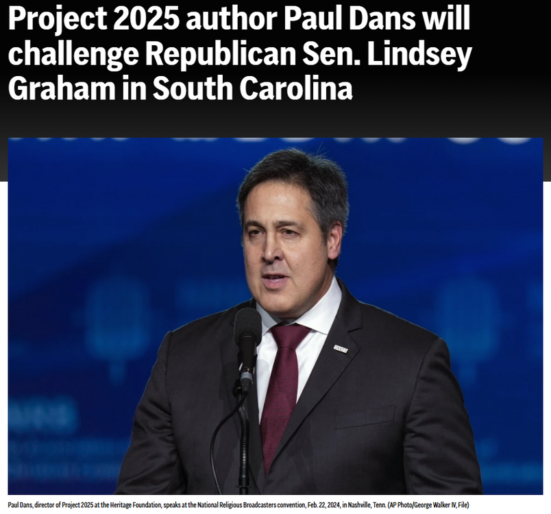 Lindsey's getting primaried. https://apnews.com/article/dans-project-2025-graham-south-carolina-senate-781a780ee4cd701d0b1d52d19e7a2892