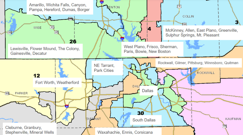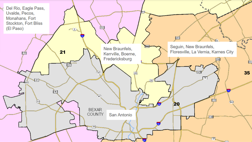 Big City Texas is being disenfranchised by Rural Texas. DFW: 2-3 voices vs. 8-9 Houston: 2-3 vs. 7-8 San Antonio: 1 vs. 4