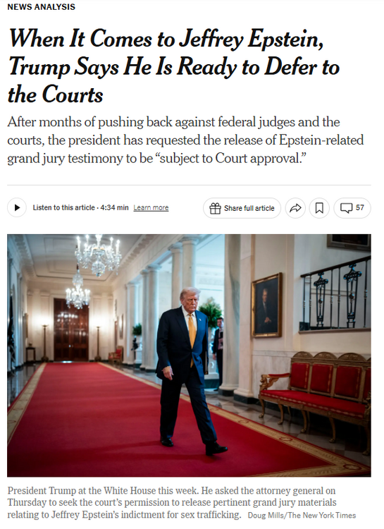 The only experience I have with the court system is from my divorce several years ago, so I do appreciate your patient explanations. With that in mind, I think you'd appreciate the context provided by this analysis. https://www.nytimes.com/2025/07/18/us/politics/trump-epstein-letter-birthday-courts.html For months, President Trump has maligned federal judges who rule against his agenda as politically motivated usurpers, referring to them as βU.S.A.-hating judgesβ and calling for their impeachment. At times, he has called into question the constitutional role of the courts as a check on the presidency. βHe who saves his Country does not violate any Law,β he posted to social media, while his administration claimed expansive powers to unilaterally deport migrants and defund federal programs. But in the case of Jeffrey Epstein, Mr. Trump has taken a different view. In this instance, according to a statement the president posted Thursday night, judges have an important role to play in deciding whether and when grand jury materials related to Mr. Epsteinβs indictment for sex trafficking can be released to the public. βI have asked Attorney General Pam Bondi to produce any and all pertinent Grand Jury testimony, subject to Court approval,β Mr. Trump said on social media on Thursday. The post came shortly after The Wall Street Journal reported on a 50th birthday greeting it said Mr. Trump sent Mr. Epstein in 2003, including a sexually suggestive drawing, an expression of friendship and a reference to secrets they shared. The New York Times has not verified the report. The idea that a judge should make the final decision about the release of grand jury testimony is normal criminal procedure. βIt is illegal to release this material,β Benjamin Wittes, the chief editor of Lawfare and a fellow at the Brookings Institution, wrote in an article arguing against its release. βItβs not a choice the attorney general gets to make.β Evidence presented to the grand jury often includes sensitive information and unproven allegations. The proceedings are kept secret to help gather evidence from witnesses and protect targets of a criminal investigation who might not ultimately be charged. So under any previous presidential administration, Mr. Trumpβs assertion that judges should have the final word on the release of grand jury material would be unremarkable. But his White House has repeatedly sought to undermine both the constitutional role and the public prestige of the judiciary. The administrationβs most intense rhetoric has been directed at district-court judges β the same ones who oversee grand juries and criminal trials. The administration now appears ready to defer to them on how much Epstein-related grand jury material the public should see. In an emailed statement on Friday, a White House spokeswoman said that comparing Mr. Trumpβs stance on Epstein grand jury material with his βwell-warranted criticisms of out-of-control district-court judgesβ was a βfalse equivalence.β βThe New York Times is comparing apples to oranges to fuel their narrative of the day,β wrote Abigail Jackson, the spokeswoman. One legal scholar said it was reasonable to take a holistic view of Mr. Trumpβs approach to the courts. The presidentβs statement on Thursday about grand jury testimony amounted to βflip-flopping on the role of judgesβ when compared to his pattern of hostility toward the courts and judicial review, said Judith Resnik, a law professor at Yale. βIf you believe in the rule of law, you ought to believe that judges have an important role to play in articulating the parameters of lawful actions β not sometimes, but always,β she said. In other matters, the administration has made clear its view that individual district-court judges wield too much power. According to statements by Mr. Trump and his administration, the judges who have ruled against their agenda include a βfar-left activistβ and a βradical left lunatic.β Mr. Trump is not the first president to criticize unfavorable rulings, but the severity and tone of his statements about individual judges, as well as his calls for judges to be impeached, have prompted some to urge him to tamp down his language in the face of rising threats to judges. And a Justice Department whistle-blower has charged that in private, the administrationβs disdain for the judiciary goes even further, claiming that he heard one senior official say the government would need to consider ignoring its obligation to follow court orders. That official, Emil Bove III, was later nominated by Mr. Trump to an appellate judgeship. Mr. Bove told lawmakers that he had never advised colleagues to violate a court order; other Justice Department officials denied the allegations. -