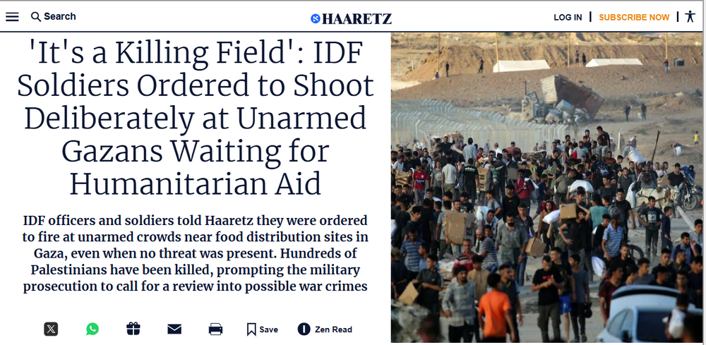 Full text of the article cited above about IDF soldiers ordered to kill unarmed Palestinians around food distribution sites: https://archive.is/rHhMU