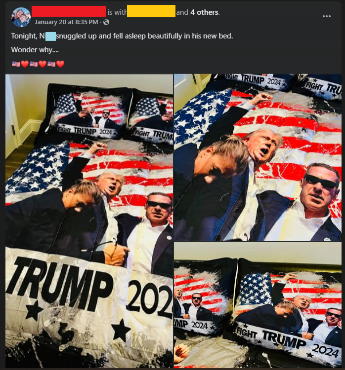 He has moved from NH to SC to GA trying to be near the right VA hospital. He settled in Frisco and is now married to a full-on MAGAT w/ a disabled kid that needs 24/7 care. I have suspicions that she is with him as a way to access his gov money, but it's not like dude is getting a mint, so maybe that's just my biases. Shortly after their marriage, I unfollowed him on FB because of her posting and tagging him in all her propaganda BS. This is from last week - N is her son, who is developmentally disabled and in a wheelchair. Like, wtf?