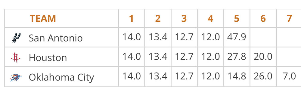 18. I’m making a longer post to answer future freak outs. For the odds of the first four picks it doesn’t matter if Utah(or any team) has a worse record than the Spurs. It doesn’t matter if TWO teams have a worse record than the Spurs. Bottom 3 is the only goal.