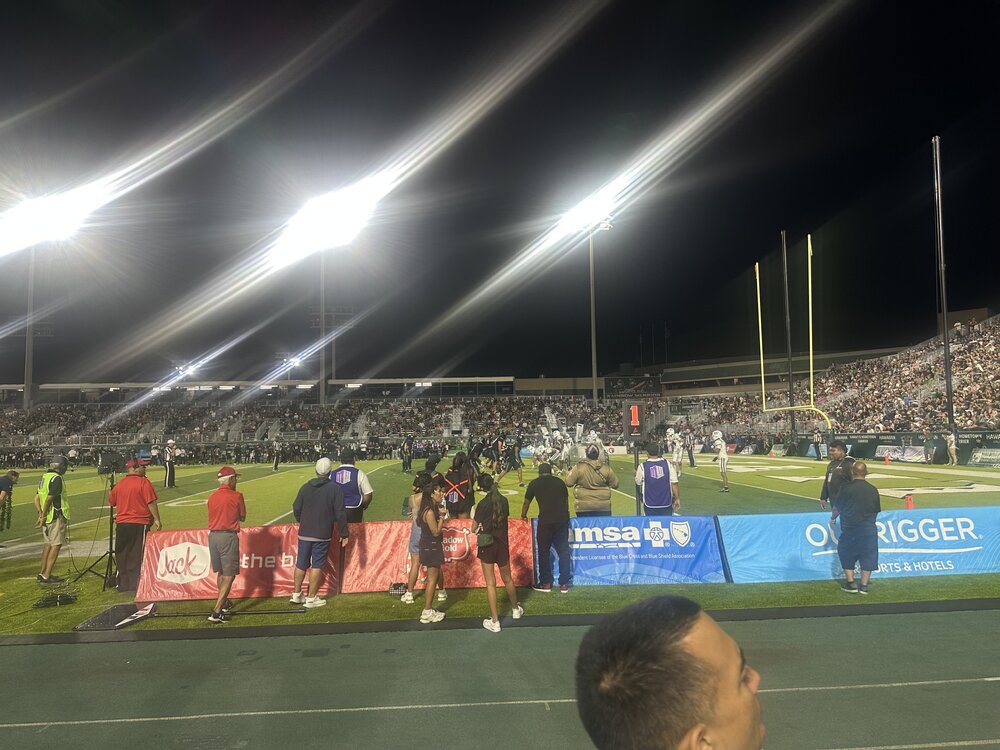 10. This has been a fun game tonight. Micah Alejado was just shy of 300 yards passing at halftime for the Rainbow Warriors. He is a bunch of fun to watch in-person. He is way better than this level of football.