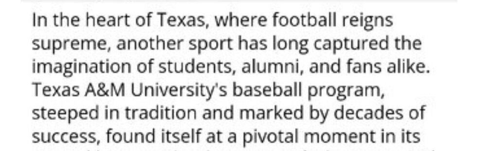17. Well, he got it half right. They are absolutely steeped in hollow, fabricated traditions, like bubble guns. In fact, their cultish adherence to these jejune traditions is what drove away the most successful coach they’ve ever had. As for the success part, they won 2 CWS games and averaged less than one appearance per decade for over 75 years before Schloss got there. That puts them right around the median for D1 programs and when you consider only warm weather states are even good at baseball, they’re easily bottom quartile for those schools. But leave it to Texas A&M to fall short of mediocrity yet paint it as exceptionalism. They’ve been doing it for over 150 years now.