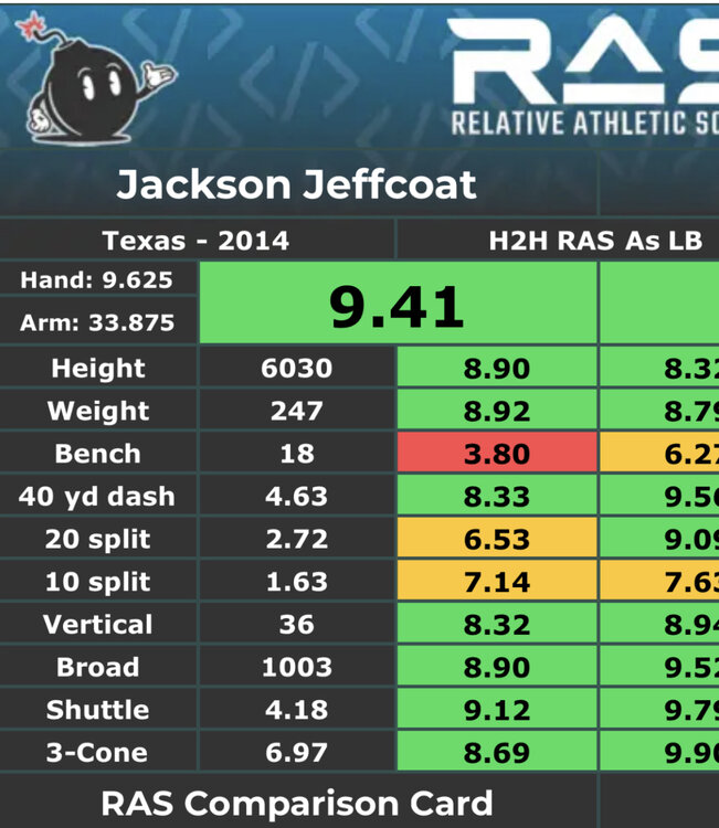 17. lulz now you’ve managed to be even more wrong than before. RAS takes into account height and weight as part of the score and dinged him for being small as a DE. He was 89th percentile overall as a DE. If you put him in as a LB, which includes smaller ILBs, then he jumps up to 94th overall in testing numbers and 89th for 3 cone. So his 3 cone was still elite at either spot. I realize you don’t have the ability to admit you’re wrong, but you were dead wrong about his 3 cone being meaningless or unimpressive no matter which way you slice it. Maybe stop digging the hole deeper. Either way I’m done reading your inane bullshit on this topic.