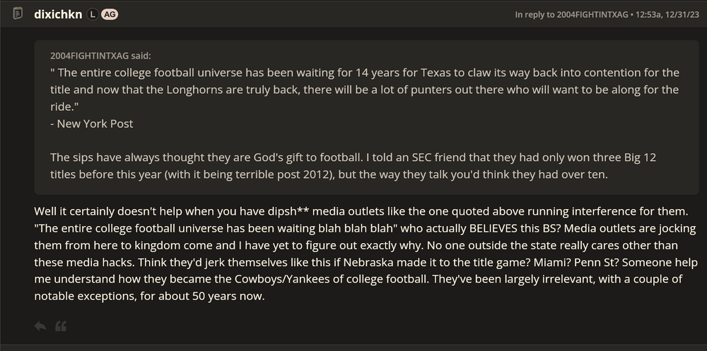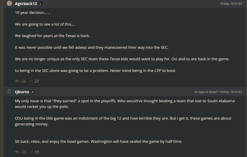 4. You can bet your bottom dollar that they will jack each other off this week to the extent that they will start anointing Reed as a Heisman candidate and prognosticating the return of the wrecking crew. All based on a janky ass win against a team that has given up on their coaching staff and the said coach is going to get the heave-ho any moment now. This kind of astounding lack of self-awareness is seen only in religious and political fanatics.