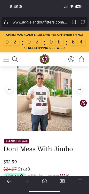 13. If anyone is doing some last minute shopping, Aggieland Outfitters has some sharp apparel on clearance with multiple discounts applied. No telling why this prime merchandise isn't moving....