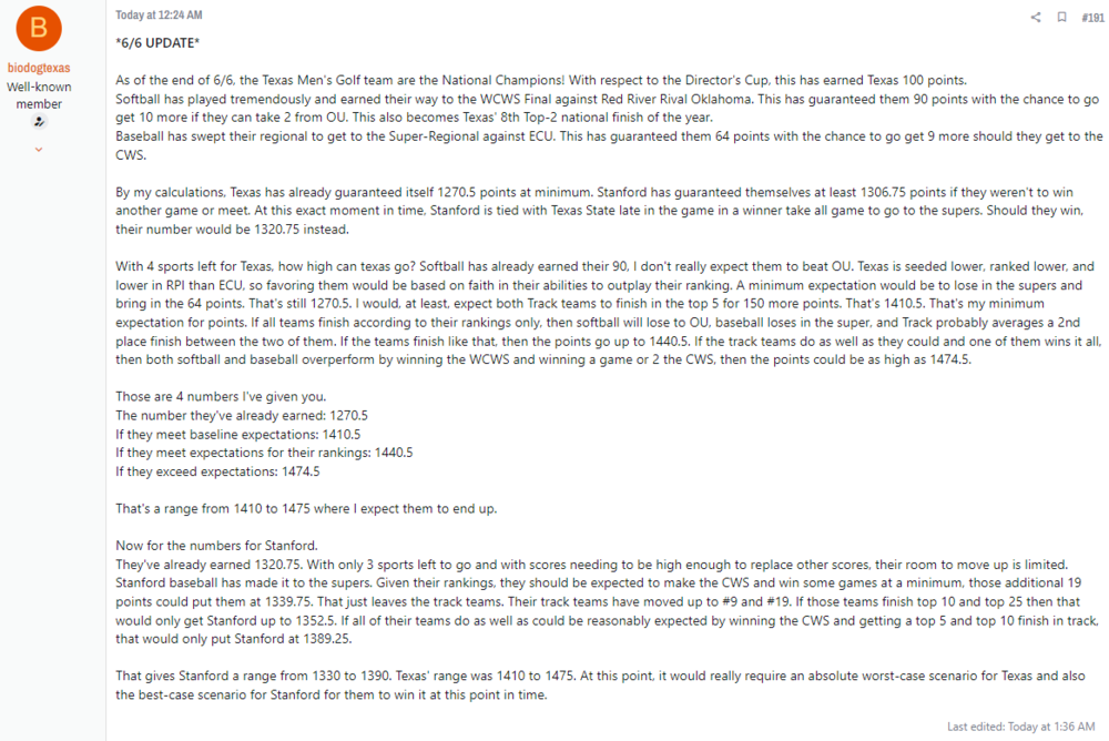 3. Texas is still poised to win it at least per the math of someone from IT boards.