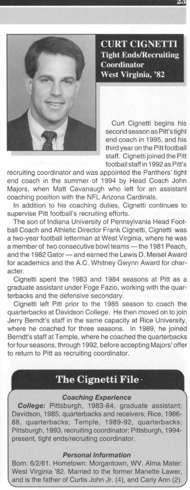 Curt Cignetti was TE coach and recruiting coordinator at Pitt in 1995. I contend he invented the notion of pairing a blocking TE w/ a catching TE. j/k https://documenting.pitt.edu/islandora/object/pitt%3A31735062136191/viewer#page/24/mode/2up- Transfer Cycle 2025-2026 - Hell Is Empty, and All the Devils Are Here