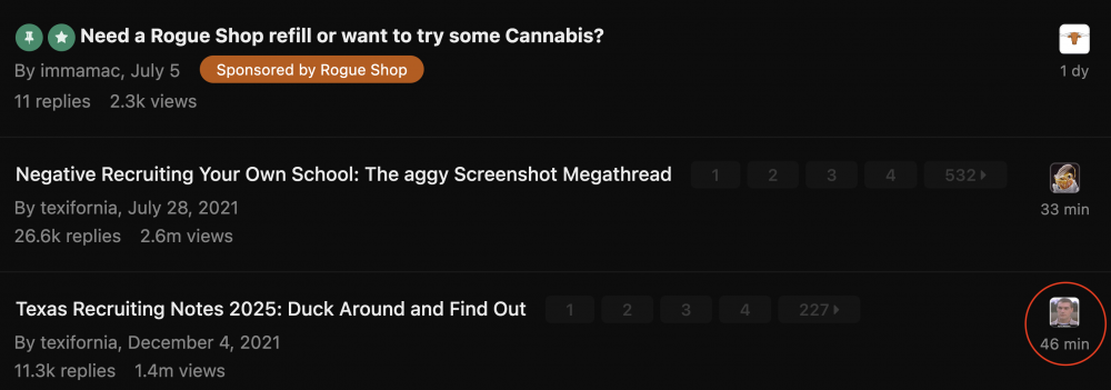 Football ... Basketball ... Baseball ... Other Sports ... Futbol ... 🤫995🤫 ... Gambling ... Movies & TV ... Music ... Hobbies ... Lulz ... Food & Travel ... Daily Texan ... Business and Markets ... Cloak Room ... Help ... For Sale ... Board Discussion ... Subscribe!... Donate!... COOKIE MONSTER!
