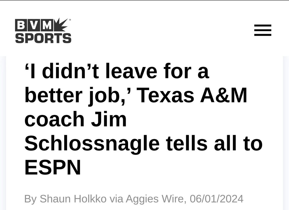 9. No they really don't. It's wild every time they downplay this job. This point is correct but they have also lost a coach in 2/3 of the major men's sports to the bluest of blue bloods. Just one to more to complete the trifecta. Football- Bryant to Alabama Basketball- Gillespie to Kentucky Baseball- Schloss to Texas?