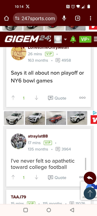 Football ... Basketball ... Baseball ... Other Sports ... Futbol ... 🤫995🤫 ... Gambling ... Movies & TV ... Music ... Hobbies ... Lulz ... Food & Travel ... Daily Texan ... Business and Markets ... Cloak Room ... Help ... For Sale ... Board Discussion ... Subscribe!... Donate!... COOKIE MONSTER!