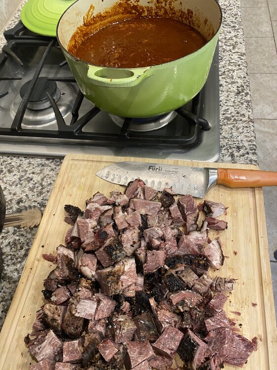 13. Basically the @jimmyjazz recipe with a couple pounds of leftover brisket substituted in. Outstanding.