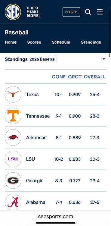 10. Sec standings not updated yet. You’re right.