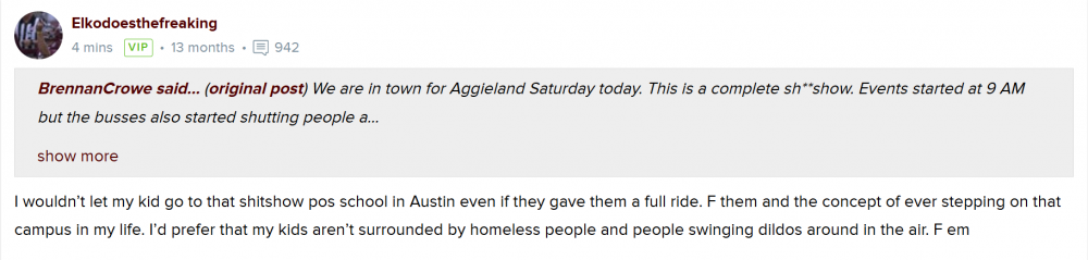 The odious term "Aggieland", the typos, the hilarious tale of Aggie woe, the begrudging acknowledgment ... ... and of course, Elkodoesthefreaking being a π ... π π π. -