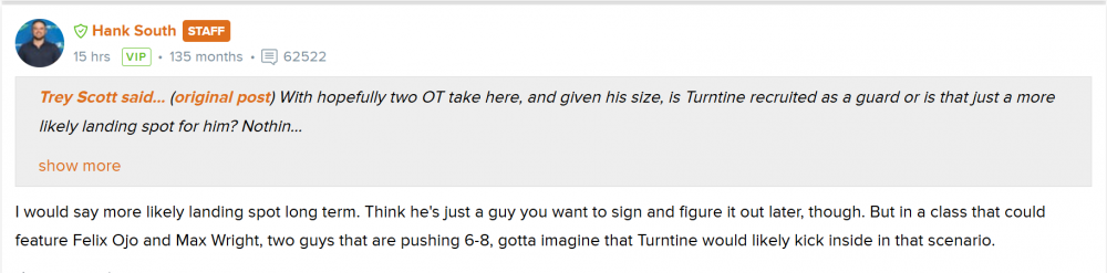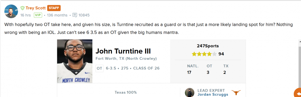Jordan Scruggs (Horns 247) wrote this about Heze Kent, earlier this month. "Another name to know is Heze Kent, a 6-foot-5, 300 pound freak-show athlete from southeast Georgia. Rarely do those types of prospects end up leaving Georgia or the southeast for their collegiate careers, but could Texas strike back-to-back years after pulling Justus Terry out of Georgia in a similar scenario? Kent projects as an offensive tackle prospect, but he plays tight end at the high school level and is being recruited at both offensive tackle and tight end depending on the school. Kent also comes from a stellar basketball background and in 2024 led the entire state of Georgia 5A classification in rebounds. I'm not sure what position Texas likes Kent at, but he's one of those athletes you just get in the building and figure out later. I mean the dude is 6-foot-5 and had 983 receiving yards on 24 YPC and 211 rushing yards on 6.6 YPC in just 12 games as a junior in a season where he played around 315 pounds. Through 16 basketball games as a junior this winter, Kent is averaging over 16 points per game, over 14 rebounds per game, and is averaging at least one assist, steal, and block per game as well. The freak-show prospect visited Texas for the Kentucky game on Nov. 23 after first picking up an offer from the Longhorns in April. Earlier in the fall Kent released a top seven of Ohio State, Miami, Florida, Kentucky, Georgia, USC, and Texas, and the Longhorns will have a dogfight on their hands in Kent's recruitment. (SCRUGGS)" (Also added this later.) "Other thoughts: The more and more I think about it, Heze Kent might be athletic enough to play a tight end role in college that's similar to what Darnell Washington played at Georgia as a tight end that's effectively a sixth offensive lineman on the field but that can also run enough of the route tree well enough. Washington is two inches taller and weighed about 50 pounds less than Kent currently does, but you should be able to see the vision with the comp." -