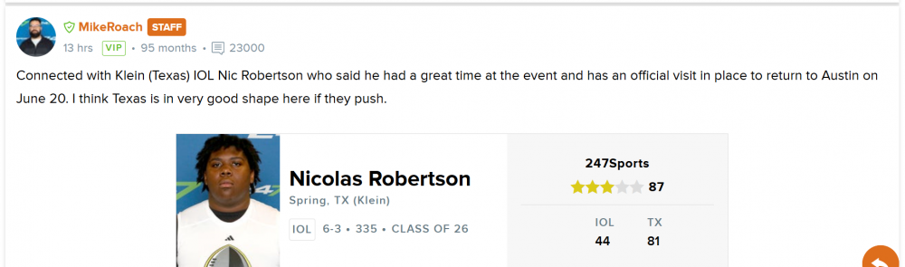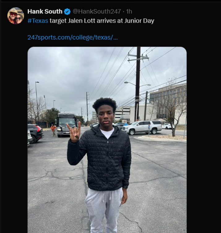 Pretty positive note. (3 big names - Jalen Lott, Dylan Berymon, Jamarion Carlton. (2 top 60 comp, 1 top 100 (247)). Two of them DLs.) Three Junior Day visitors to watch as potential Texas commits down the road Tom Loy (247 Sports) -