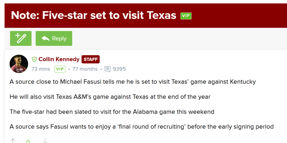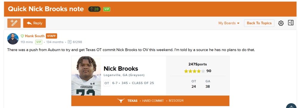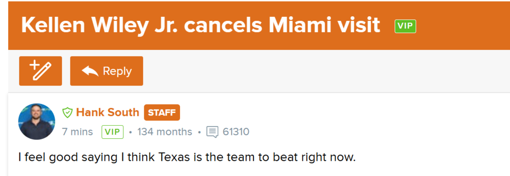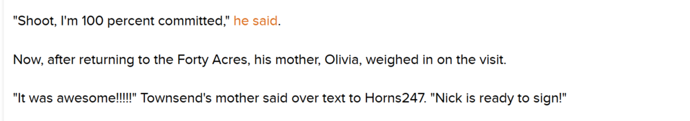 1. Nick Townsend - this sounds good ... :-)) VIP intel: Latest on Longhorns TE commit Nick Townsend after Texas visit VIP Hank South (Horns 247)