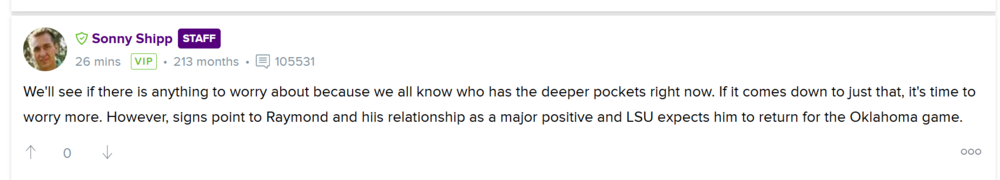 6. This is quite something. From LSU 247, yesterday, on Underwood's chances of flipping. *THREE* different mods ... 😂 😂 😂.