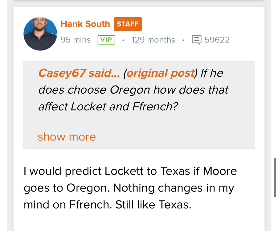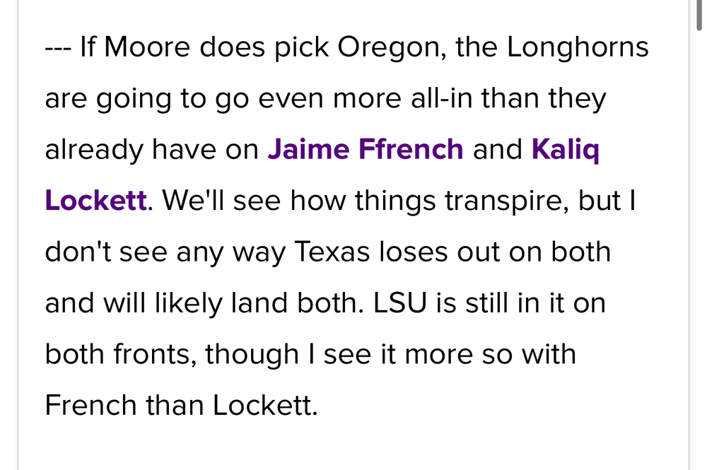 JOHNSON: Johnson's commitment date is TBD but he's also a guy I don't see Texas saying no to either if he wanted to hop in the boat, especially because it seems as if the Longhorns are pushing the hardest for him compared to Hines or McCutcheon.