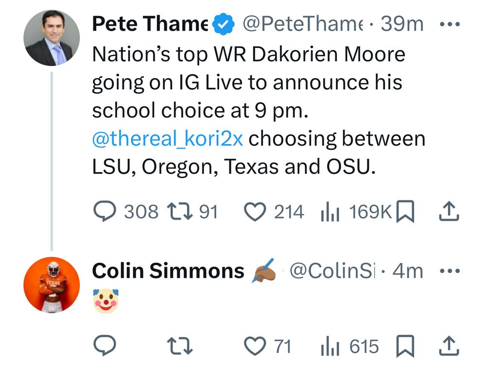 MICHAEL TERRY: On the same note though, I still view the Longhorns as the team I expect to win this recruitment and so does the source close to Terry.