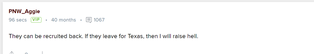 This had me laughing hysterically ... 🤣 🤣 🤣. (Also - many of these dopes commit w/ a horns down ... if he did the same, he's beginning and ending his Aggie career w/ Texas on his mind. What a ... maroon ... lulz.) -