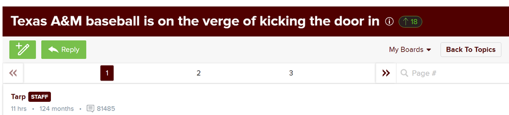 5. From the Department of Exquisite Timing ... Tarp (Aggie 247) wrote this article arounnd 11:00 AM. This morning. ....... FULL ARTICLE Texas A&M baseball is on the verge of kicking the door in Tarp (Aggie 247)