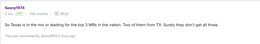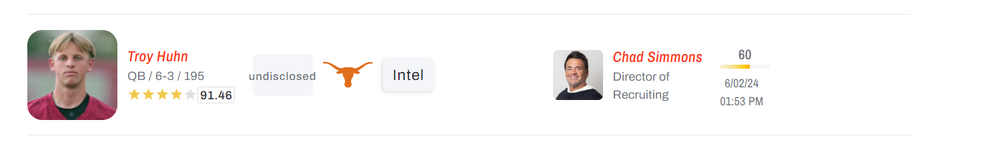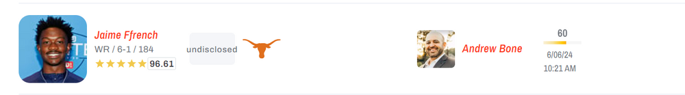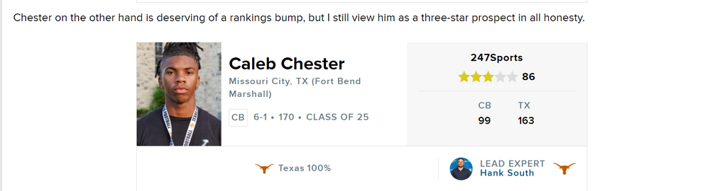 Good primer on this OV weekend, from 247 Sports (spoilered). 6 visitors this weekend, 45 total OVs in June. This weekend, the two big ones are DLs Myron Charles and Josiah Sharma. Athlete Michael Terry III EDGE Javion Hilson Tight end Kaleb Edwards DL Myron Charles DL Josiah Sharma Cornerback Caleb Chester. (Bit of trivia ... Will Stein - current Oregon OC - supposedly coached Jordan Scruggs at UTSA.) Complete note - Texas official visit primer: Everything you need to know about this upcoming weekend's six visitors An in-depth breakdown of everything you need to know about each of the six official visitors set to take in the Forty Acres this weekend. Horns247 Staff -