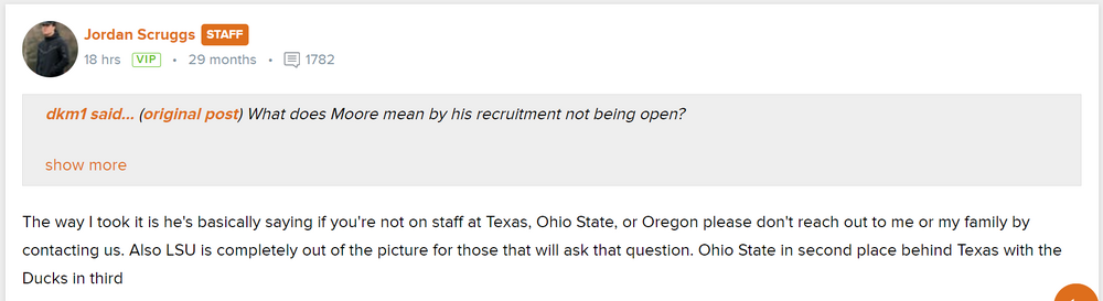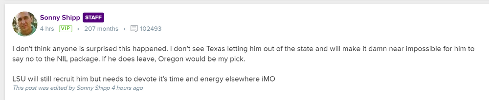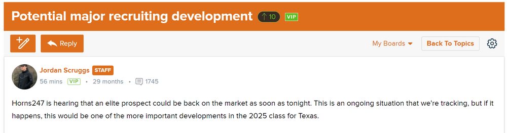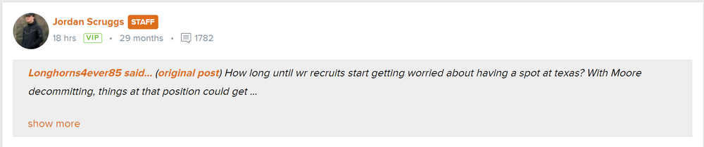 Jordan Scruggs (Horns 247), from a Q&A. (He's already more informative than Streets and many of the others ... ) -