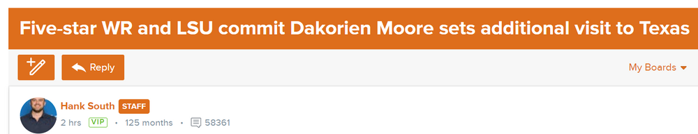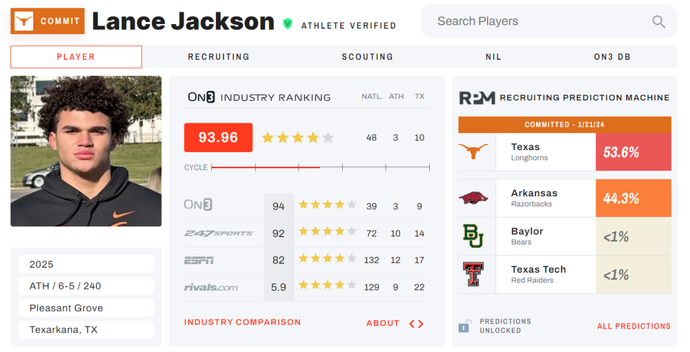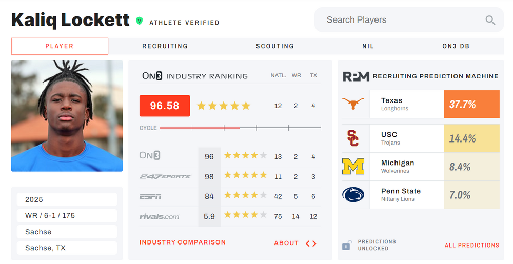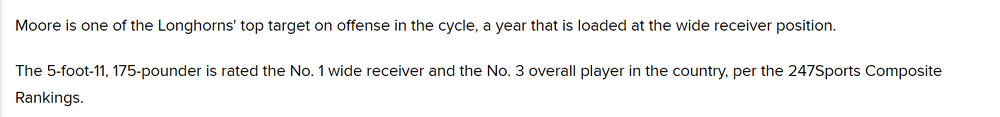 Five-star prospect on Texas: 'Why wouldn't you want to be a part of that receiver room?' Hank South (Horns 247) Top-15 overall, #2 WR. How about we land Moore, Locket and Ff*** - 3 of the top 4 WRs in the nation? Getting one of those 3 would be good ... all three? -