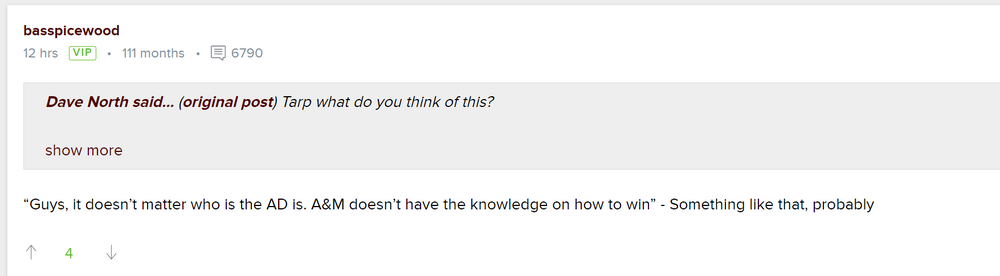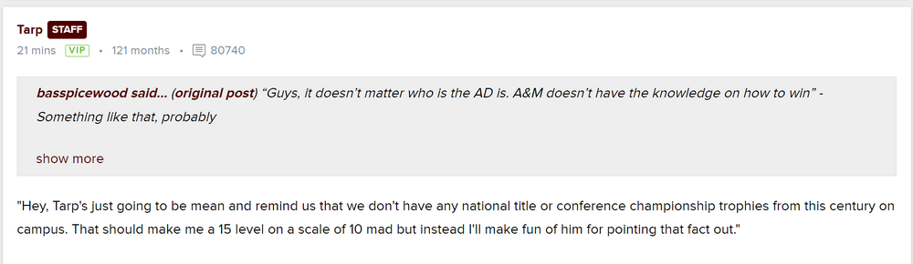 🙂 Actually, someone posted it on 247. (Looks like you can actually do a search on Texags ... the search function on 247 is useless. I've wondered whether that was on purpose, to prevent users from pulling up old posts like the one above. Or holding mods accountable for anything they may have said in the past.)