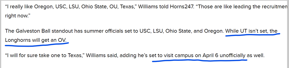 Jonah Williams - OV + UOV to Texas. Five-star playmaker Jonah Williams on UT: 'Something’s good in store for Texas Hank South (Horns 247) -