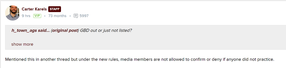 (The full article (including the media "rules" stuff, plus some Q&A from the thread.) Notes, observations from Texas A&M's third spring football practice of 2024 (defense) Texas A&M held its third of 15 allotted spring football practices Tuesday on the two outdoor Coolidge Practice Fields. Carter Karels (Aggie 247) -