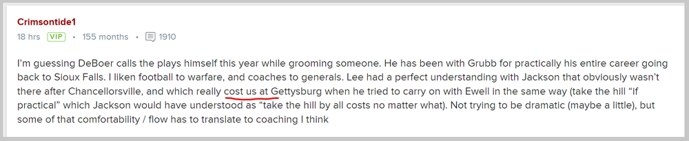 2. One simple, revealing word. "Us." (From Bama 247, in a thread discussing Ryan Grubb's departure, and possible replacements.)