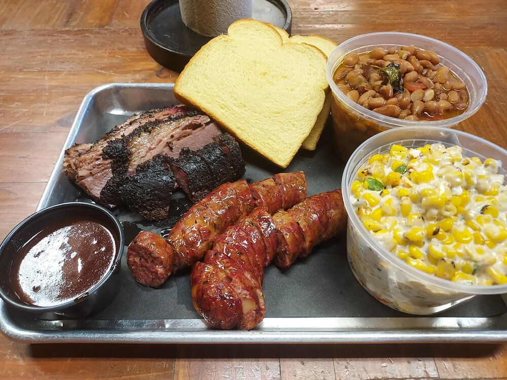 6. Schoepf's in Belton, brisket, burnt ends, poblano and pepper jack sausage, beans and corn