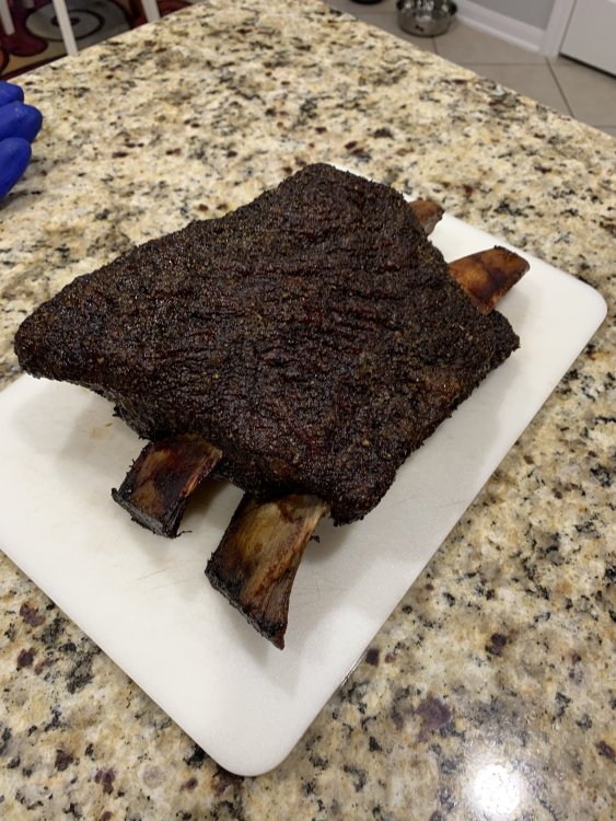 10. Bought a rack of beef short ribs at Costco earlier this week. Been wanting to try them. Will do them again. It’s like brisket point on a bone. Absolutely delicious. Salt and pepper only.