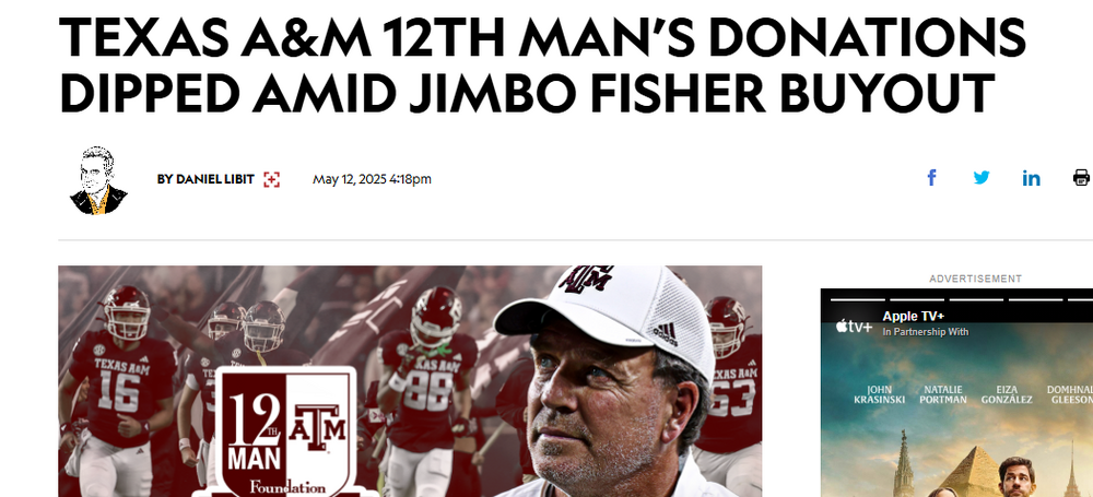 11. Texas A&M's 12th Man Foundation Saw Donations Dip Amid Fisher Buyout