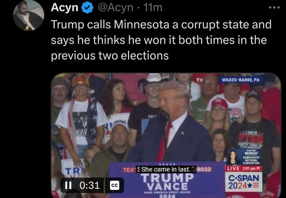 4. Walz is on fire today...love his stump speech. In MAGA world: