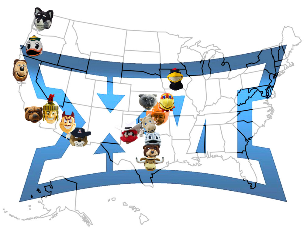 TLDR: For UT pods would mean playing K-State, Kansas, Ok St less and the west coast schools more.