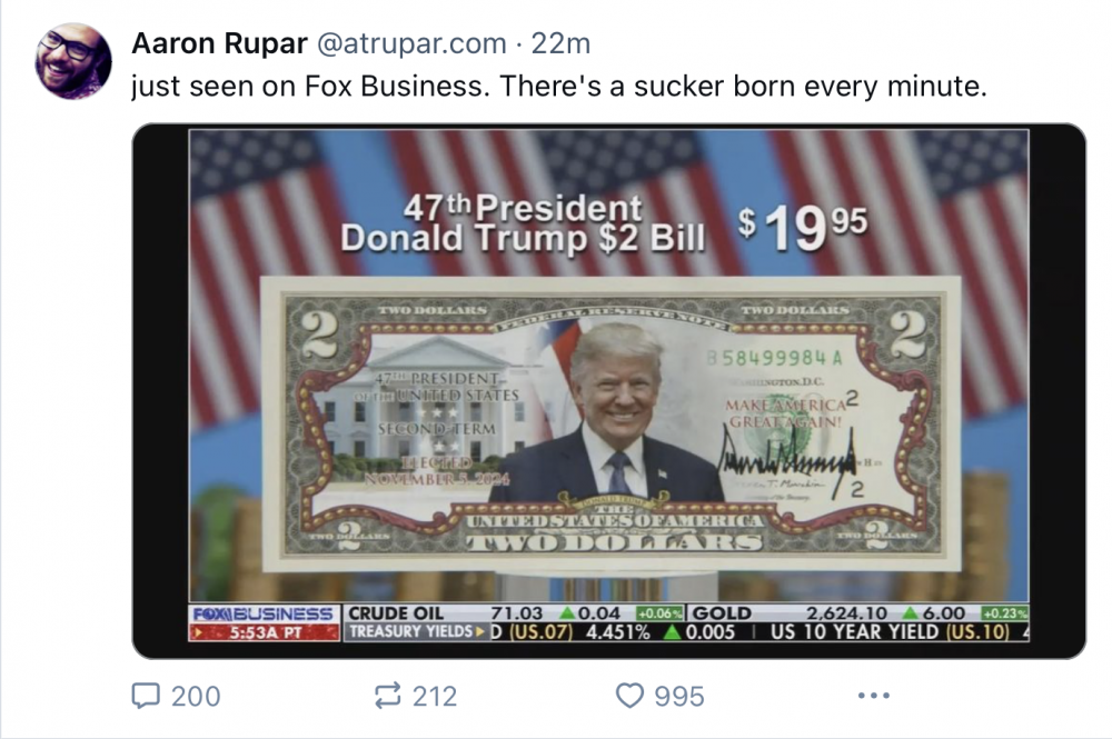 11. You damned well know that within a month, he will be in the Oval, doing that cheesy fucking smile while holding up Trump branded bulbs for sale. And they will be double the price of LED bulbs, using technology invented in America! And they will sell. Shit, why didn't I think of this. Freedom bulbs. The grift opportunities abound!