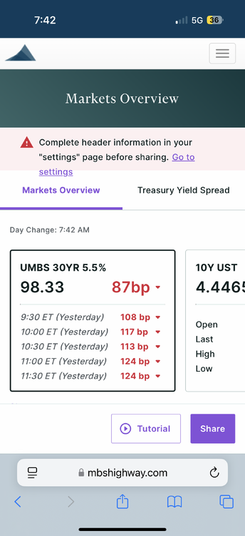 12. Down 60 bips today. Down 175 bips since Friday at noon! I was afraid that we were going to have more than 3 or 4 hours to get deals in and locked when the market go advantageous for refinance people. Nope, didn't need to worry. Was making my calls all that morning and then lost 1/2 a point in interest rate over the next 2 days. This is so much fun. I just pinch myself every day that I get to get up and keep rolling the same boulder up the same hill only to see it go backwards when we get near the top (inflection point) in the market. Fun stuff. @UTPhil2006 you go ahead and take a bath with a toaster @LCHornyou go ahead and slit your writs. I will do a swan dive off the skybridge in front of an 18 wheeler when I'm up at UWM next month. That seems like a fun suicide pact, right? On a serious note, it's discouraging to have stuff snatched away from you at the last minute, but whatever. Put on pants and do it all over again tomorrow I guess.