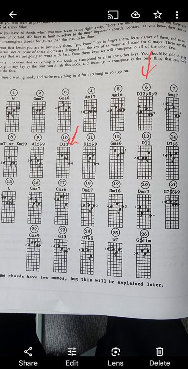 22. I'm a long way from a jazz player and Willie's playing there is way beyond me. I do however have a copy of Mickey Baker's Complete Course in Jazz Guitar and that's the book all the old timers got their chord substitutions, so I dug it out. Playing around with this D13 (adding the root on the A string), then like a D9 or D7, then using the top of D13b5b9 to walk to G kinda gets close. I mat be way off, but it is fun playing around w some of these chords.