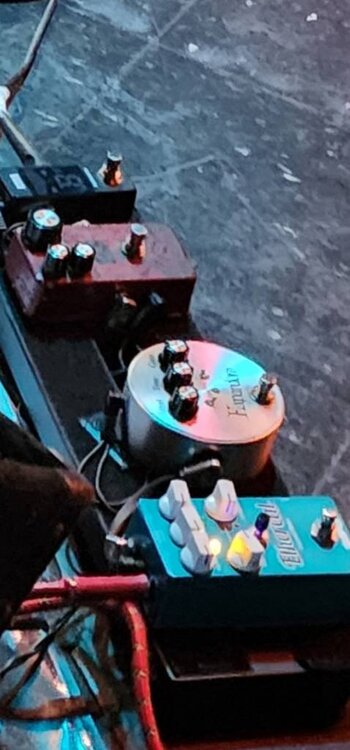12. I actually have that little tuner. Ordered it by mistake, then couldn't find after I had the return label. The only question left is the red pedal between the tuner and fuzz. Some sort of drive I'd assume. The band was Brant Bjork Trio. Brant is former Kyuss - OG stoner rock from the palm desert. They sounded incredible and the guy playing bass had me taking notes.