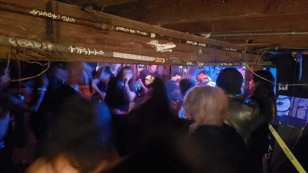 Speaking of punks, down the street from me is one of the coolest things in local music that I dont take nearly enough advantage of. We have this coop, non-profit record store that is mostly punk, but there's all kinds of records there. Its kind of the local punk HQ though. The door on the left is sometines open, and when it is you wanna walk through it. It leads to the backyard where you'll find a bunch of kids in their punk uniforms drinking cans of beer from 12 packs they bought at the 7-11 next door. Mostly a bunch of misfits. Fat kids, dorky kids, socially awkward kids, etc. Im not saying that in a disparaging way. Always friendly and welcoming. I only know a handful of them, the ones that come in the bar. The real treat is that, from there, you can enter the grimy, low ceiling basement where they put on regular free punk shows. Many of times I've just been walking past, heard live music drifting through the street and ran back there to catch a random show. Sometimes even touring bands passing through. The store itself is a converted house, there used to be random shows in what had been the kitchen, but a few years ago they blew that put for more record space. I dont take too many pictures there because the key to being accepted as an old guy in those crowds is to not be creepy, and an old guy taking a bunch of photos is kinda creepy. I will try to get one of the bands because I try to get a picture of every band I see, but the ceiling is so low its hard to get a decent pic in there. /csb